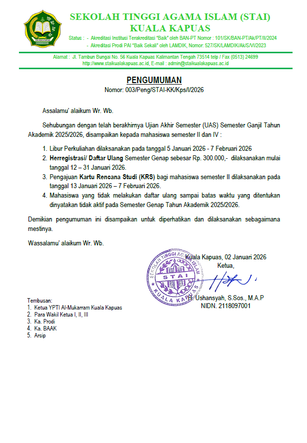 Pengumuman Libur, PPL dan Workshop